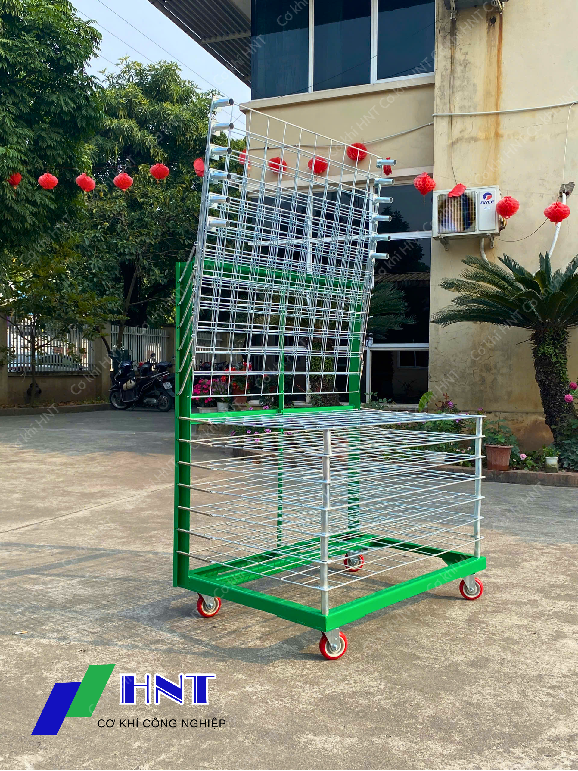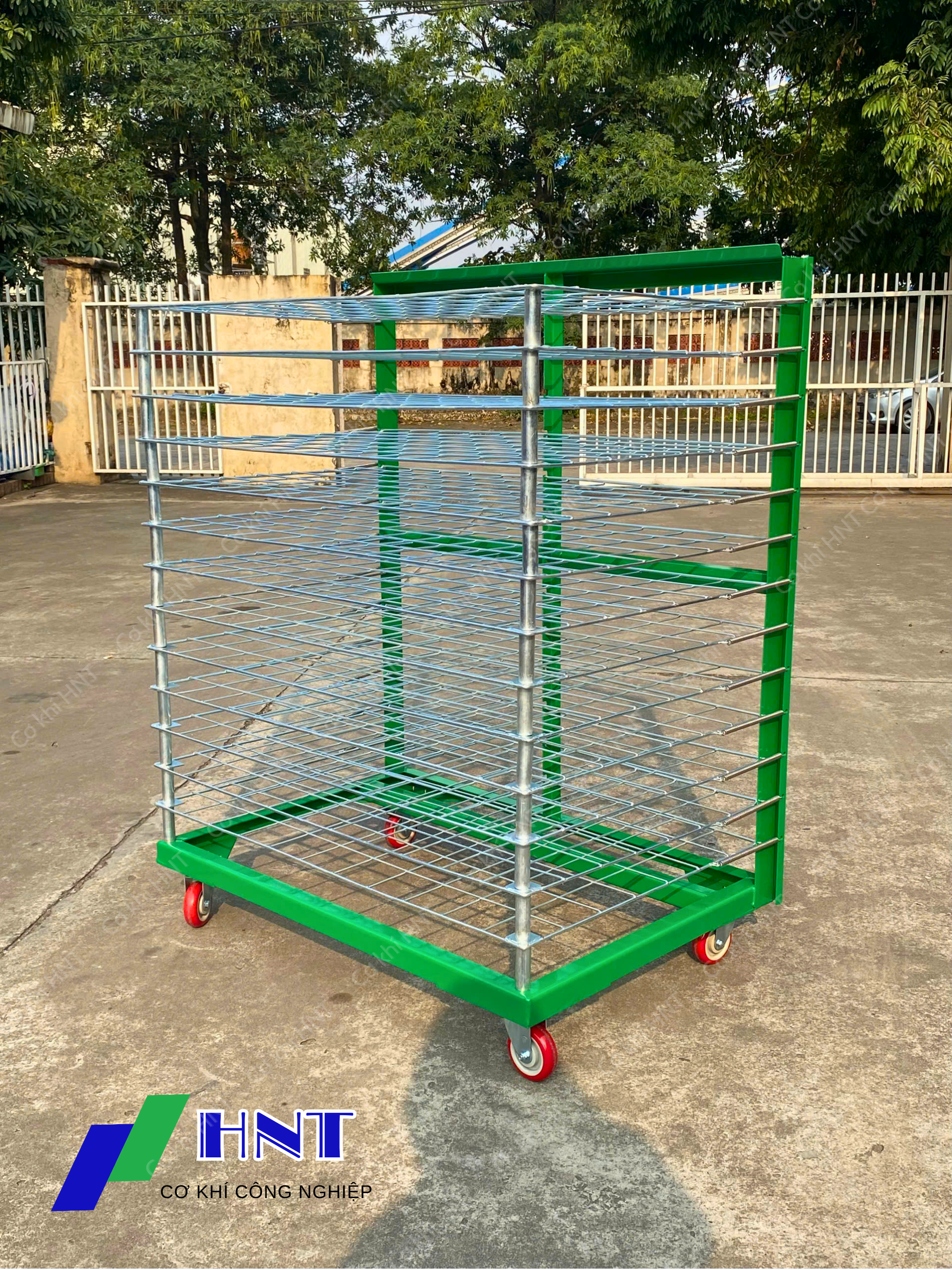 Xe đẩy phên lưới (xe sấy hàng) là thiết bị công nghiệp được thiết kế với nhiều tầng lưới thông thoáng, chuyên dùng để lưu trữ, sấy và vận chuyển hàng hóa trong nhà máy.