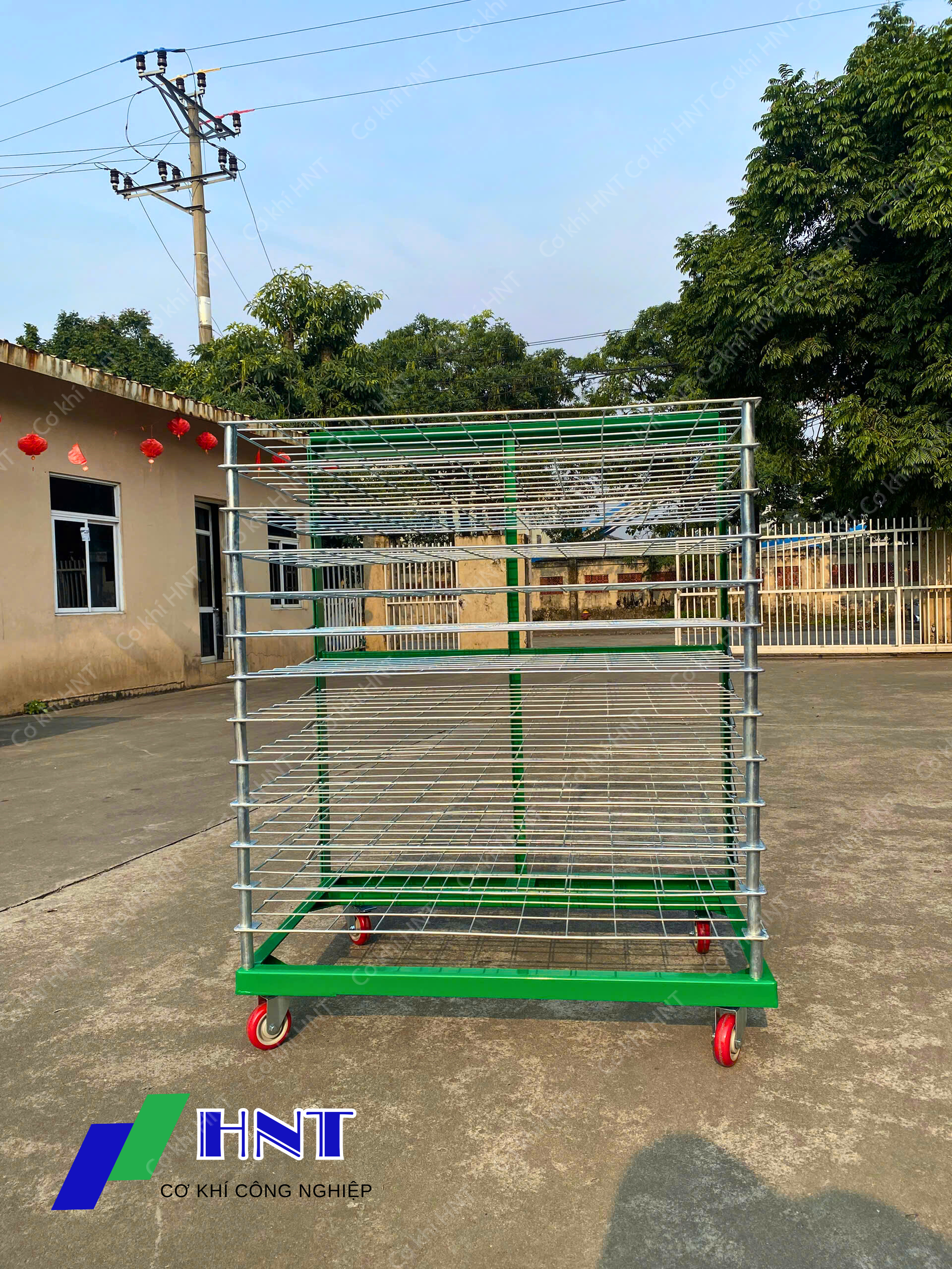 Xe đẩy phên lưới (xe sấy hàng) là thiết bị công nghiệp được thiết kế với nhiều tầng lưới thông thoáng, chuyên dùng để lưu trữ, sấy và vận chuyển hàng hóa trong nhà máy.