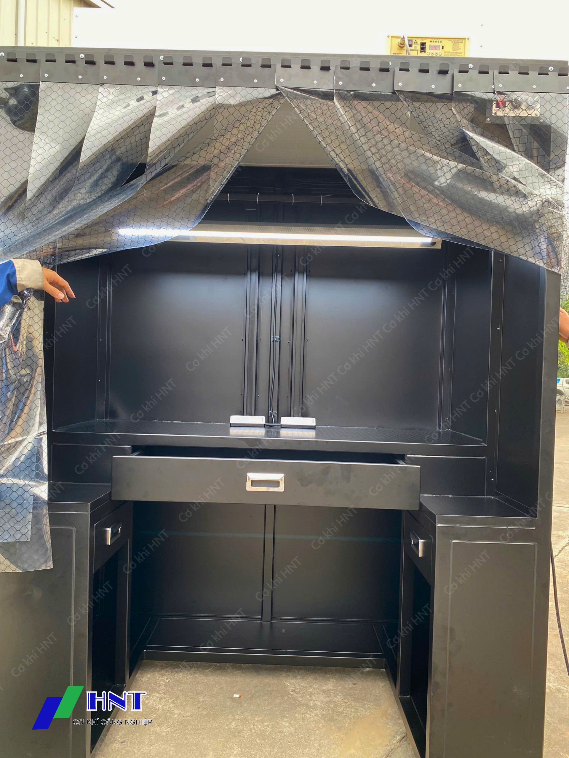 Tích hợp ngăn kéo, tủ chứa đồ giúp nhân sự QC thao tác nhanh chóng.