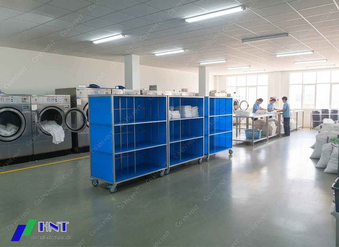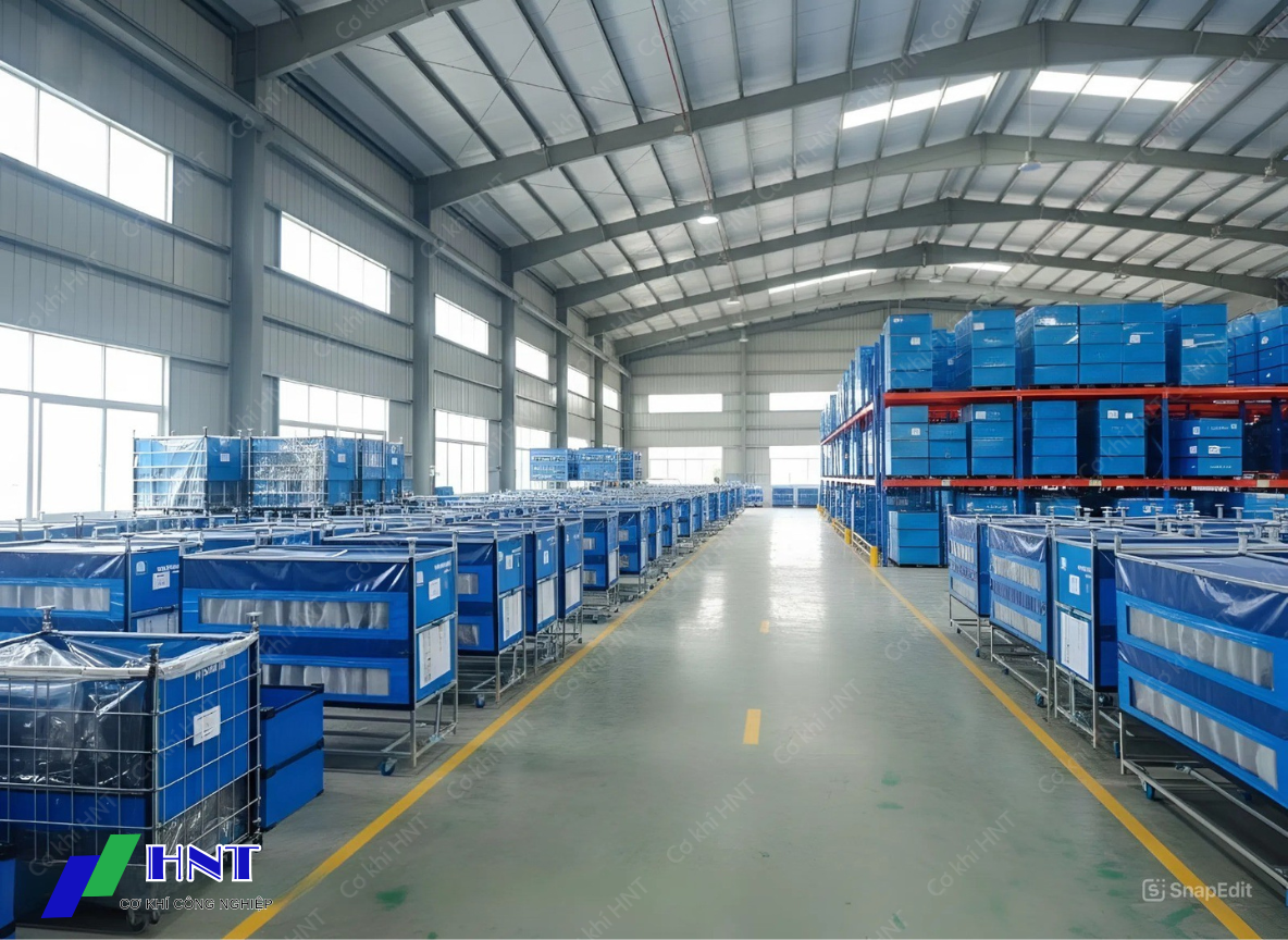 - 4 Ứng dụng xe đẩy bọc nỉ công nghiệp HNT trong nhà máy, xí nghiệp, xưởng sản xuất