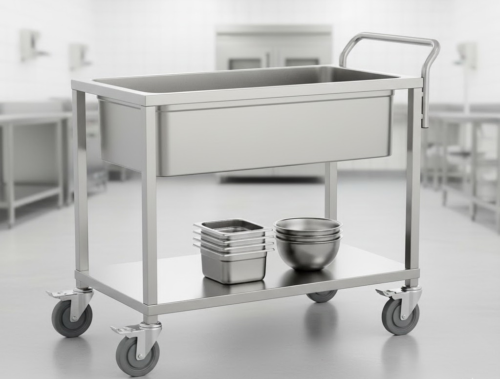 Trong ngành thực phẩm và đồ uống, việc đảm bảo vệ sinh an toàn thực phẩm là ưu tiên hàng đầu. Xe đẩy hàng inox là lựa chọn lý tưởng để vận chuyển nguyên liệu, thực phẩm đã chế biến, và các sản phẩm khác, vì chúng dễ dàng vệ sinh và không gây ô nhiễm.
