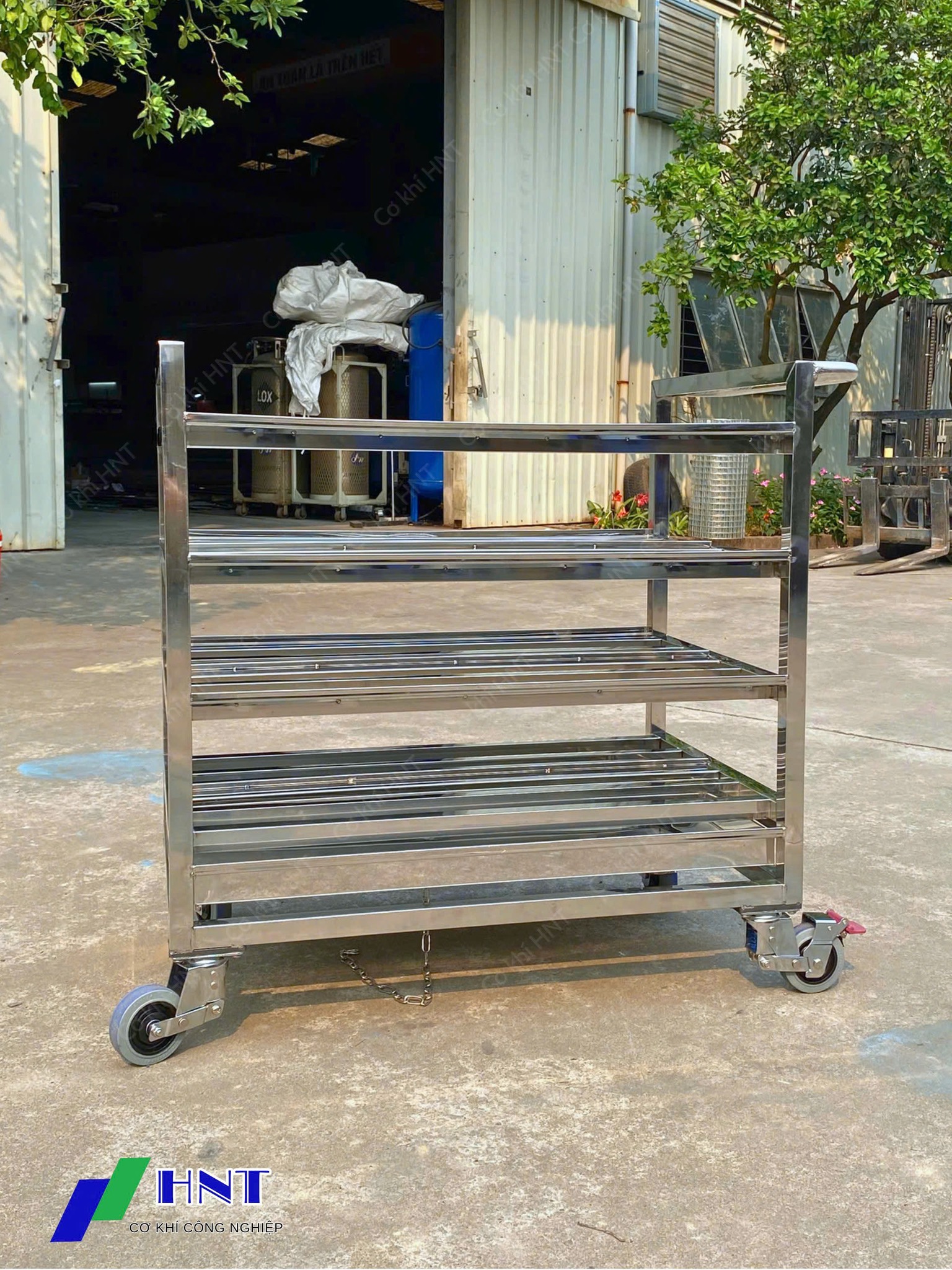 - Thiết kế theo yêu cầu: Cơ khí HNT nhận thiết kế và gia công xe đẩy inox theo yêu cầu riêng của từng khách hàng, đáp ứng mọi nhu cầu sử dụng.