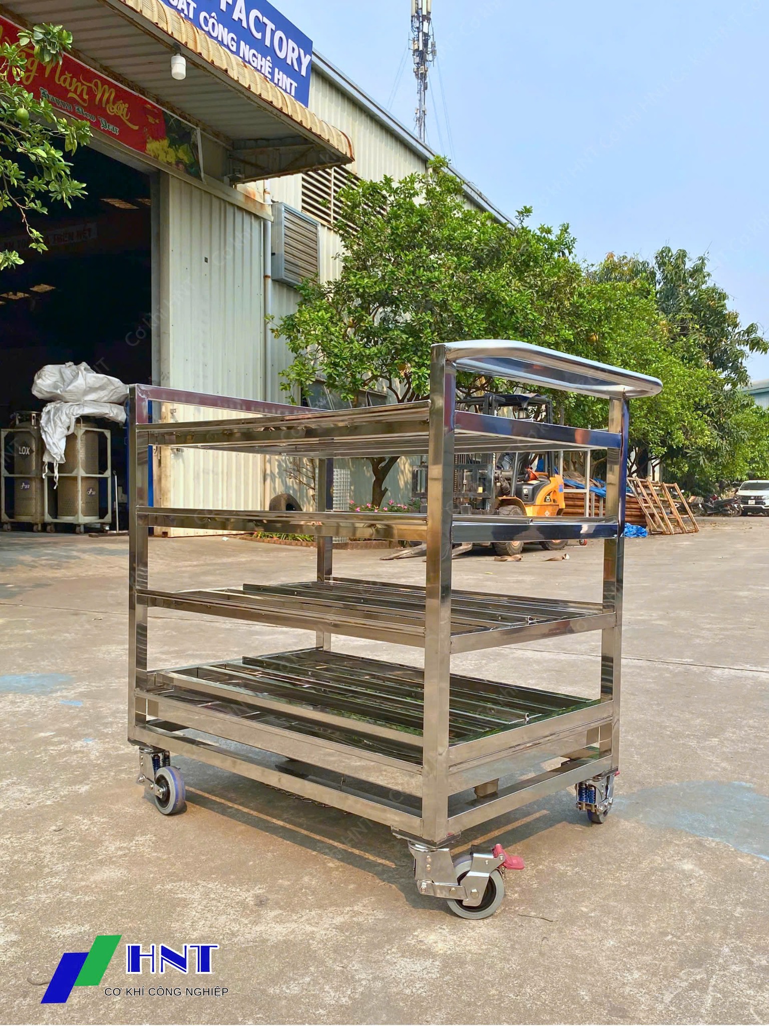 - Thiết kế theo yêu cầu: Cơ khí HNT nhận thiết kế và gia công xe đẩy inox theo yêu cầu riêng của từng khách hàng, đáp ứng mọi nhu cầu sử dụng.
