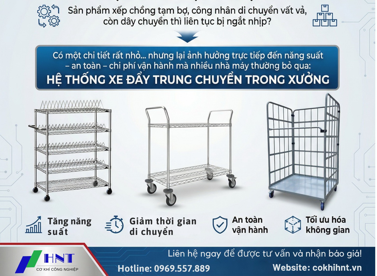 Giải pháp từ HNT – Hệ thống xe đẩy chuyên dụng giúp doanh nghiệp: